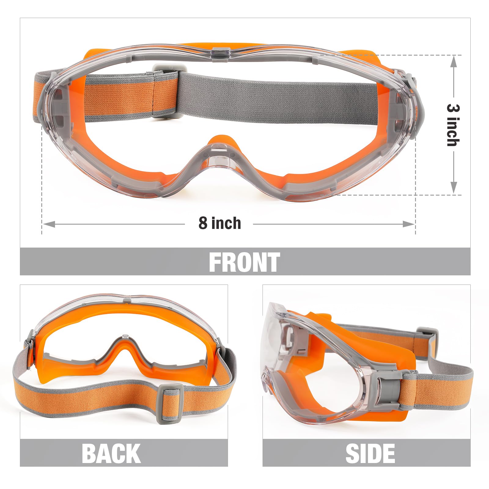 MELASA Industrial Grade Safety Goggles, Anti Fog Clear Lens Lab Goggles Fit Over Glasses for Men and Women Eye Protection